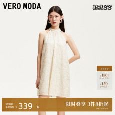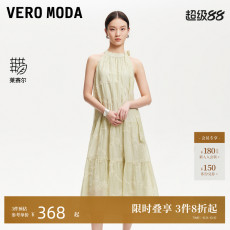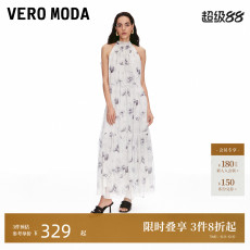 Vero Moda连衣裙25夏季新款淡人挂脖系带褶皱雪纺拼接宴会礼服裙