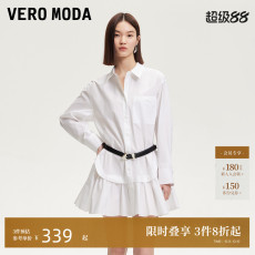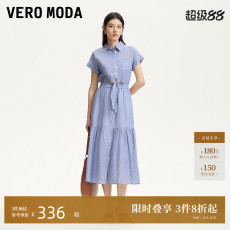 Vero Moda连衣裙2025夏季新款含棉腰带收腰单排扣衬衫裙32527B011