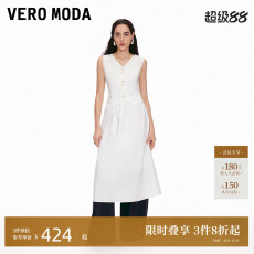 Vero Moda连衣裙2025夏季新款含棉纽扣装饰马甲设计长裙32527A041