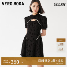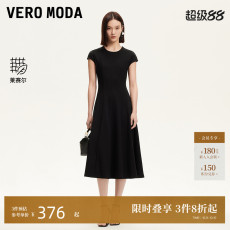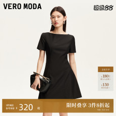Vero Moda连衣裙25夏季新款收腰修身立体剪裁A摆短袖小黑裙淑女风