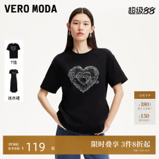 VeroModaT恤2025夏新款纯棉字母刺绣烫钻基础T休闲短袖上衣连衣裙