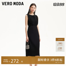 Vero Moda连衣裙女2025夏季新款大V领褶皱A版高腰无袖显瘦连衣裙