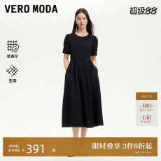 Vero Moda连衣裙女2025夏季新款纯色圆领双侧口袋长款连衣裙纯棉