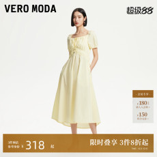 Vero Moda连衣裙2025夏季新款含棉方领捏褶系带设计纯色32527B024