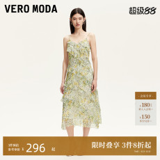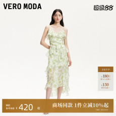 Vero Moda连衣裙夏季千金风甜美荷叶边系带碎花吊带裙32427A040