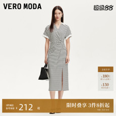 Vero Moda连衣裙女2025夏季新款V领捏褶撞色条纹裙子325261019