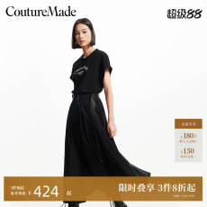 Couture Made连衣裙夏季圆领短袖褶皱长裙优雅时尚通勤32427B020