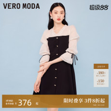 Vero Moda连衣裙2025夏新款千金风度假黑白拼接V领短裙32527C001