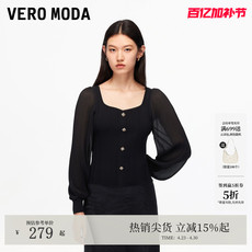 Vero Moda针织衫2026春夏针织拼接纽扣假门襟设计灯笼袖上衣
