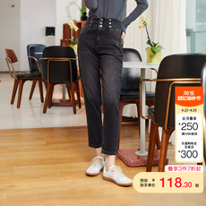 tq区绫致Vero Moda牛仔裤春夏含棉铆钉装饰高腰萝卜裤时尚九分