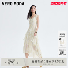 Vero Moda奥莱连衣裙春夏新款V领针织衫网纱吊带裙气质优雅淑女