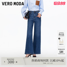 Vero Moda奥莱牛仔裤女秋冬新款含棉高腰双口袋微喇裤气质优雅