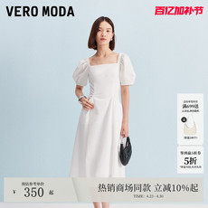 Vero Moda连衣裙2026春夏淑女风方领泡泡袖收腰A字裙32537B001