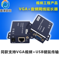 蓝潮高清VGA延长器100米KVM网络线传输器支持交换机1发多收带USB鼠标键盘1080P电脑监控转RJ45网络口双绞线