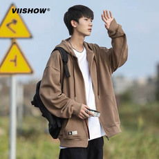 VISHOW连帽卫衣男2023春秋款夹克宽松纯色帽衫潮牌拉链开衫外套