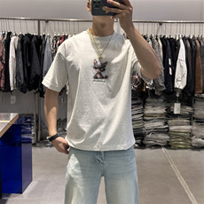 美式休闲个性卡通兔子印花短袖T恤男夏季潮牌痞帅重磅纯棉半袖潮t