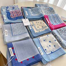 时尚波点拼接条纹小方巾58x58棉质透气旅游防晒头巾绑发带女领巾