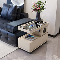 现代简约轻奢岩板茶几家用客厅高级感茶几可移动推车边几沙发边柜