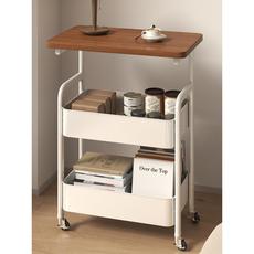 奶油风可移动沙发边几小推车简易茶几客厅家用小桌子置物架牀边桌