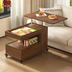 客厅家用升降边几实木移动茶几带轮小推车巴士边几小户型沙发边柜