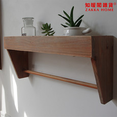 zakka杂货 一字搁架搁板壁挂花架 实木木质复古木架子置物架