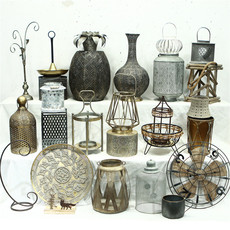 孤品大集合-外贸家居饰品复古做旧铁艺装饰花盆摆件烛台zakka杂货