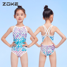 洲克儿童泳衣女童连体平角专业游泳训练zoke中大童温泉女孩游泳衣